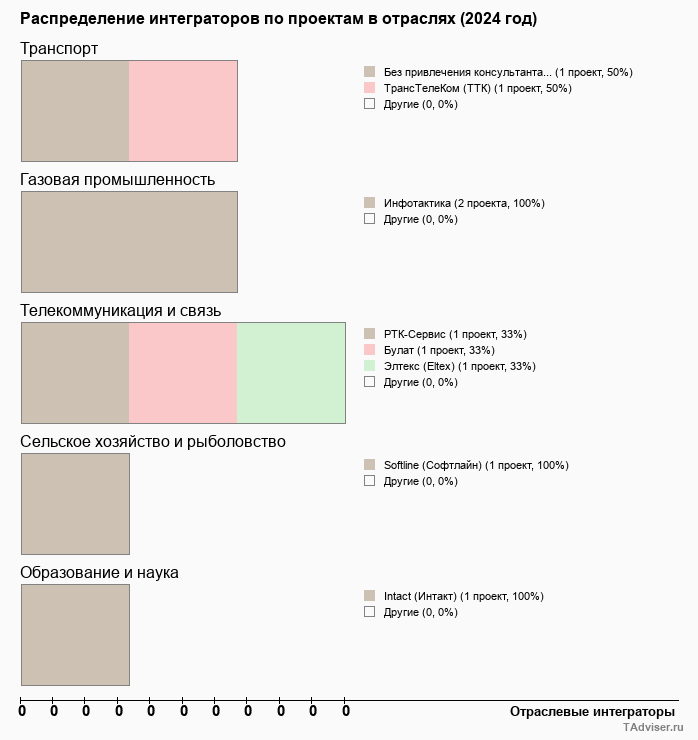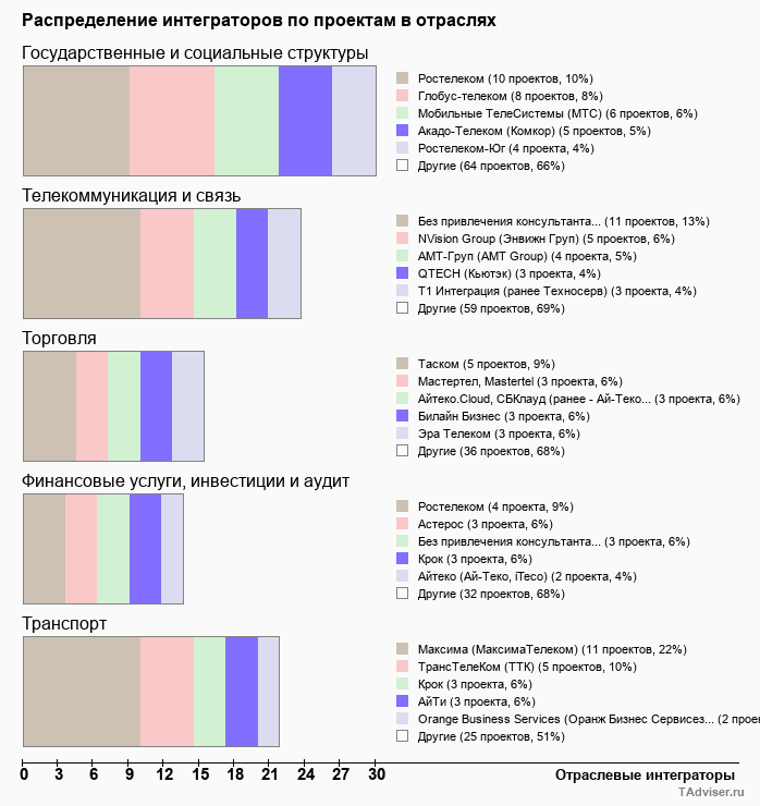 Отраслевое распределение по количеству проектов внедрений