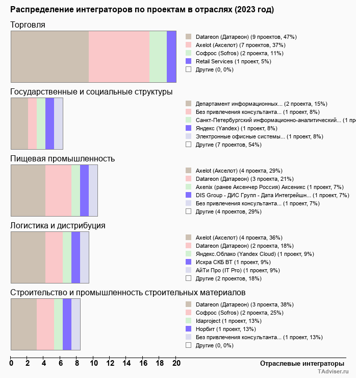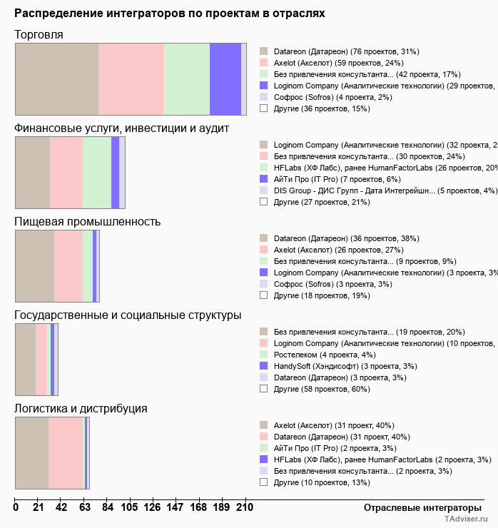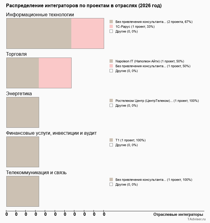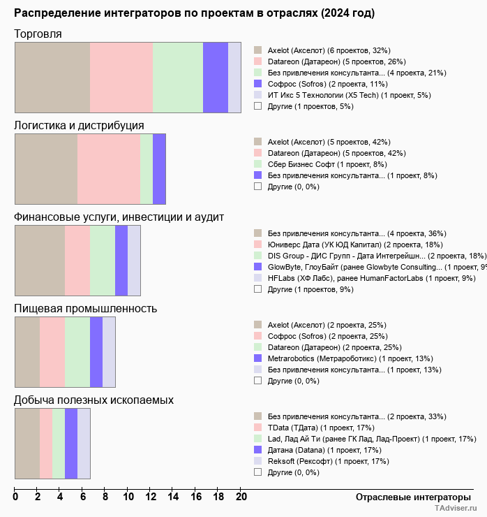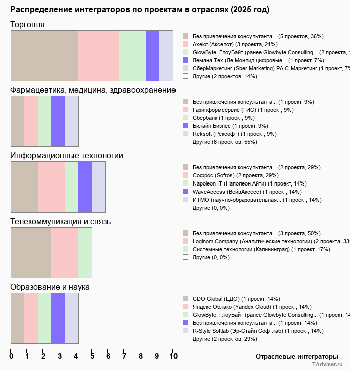 Отраслевое распределение по количеству проектов внедрений